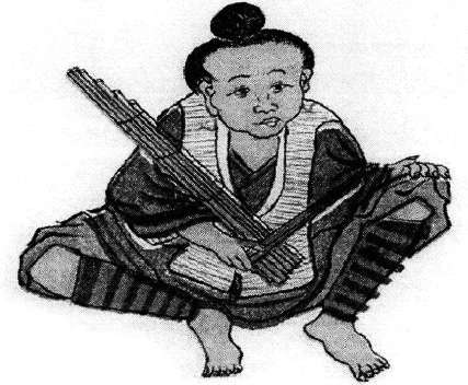 “八寨黑苗”的抄本众多,其中仅有刘甲本、博甲本、民院本、台甲本、I.H.E.C.Paris抄本、刘乙本以图文并茂的方式展现了一定的音乐图像,其中I.H.E.C.Paris抄本中绘制了两名男子,一人吹笙,一人执笙,而另5种抄本只绘制了一男子右手持笙的情景。从音乐图像中的芦笙形制来看,刘乙本中的芦笙比较不同于其他的版本,它在芦管的顶端插上了一个葫芦,从声学的角度探究,应具有扩声或者混响的效果,我国黔西南地区的苗族聚居区域有一种“五管芦笙”,其吹嘴和芦管顶管各有一个葫芦,应该与其原理相近。