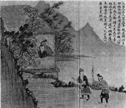 《百苗图》共有7种抄本描绘过“夭苗”,其中有3种抄本涉及苗族特色的婚礼仪式音乐,即:“夭苗”的成年女子往往会站上野外的竹楼,而有求偶诉求的男子就在竹楼旁边吹起芦笙,以期能引起女子的注意,并得到女子的青睐,这里描绘的是夭苗青年男女相亲相识的场面,因为有了芦笙的参与,从而有了特殊的浪漫味道。
