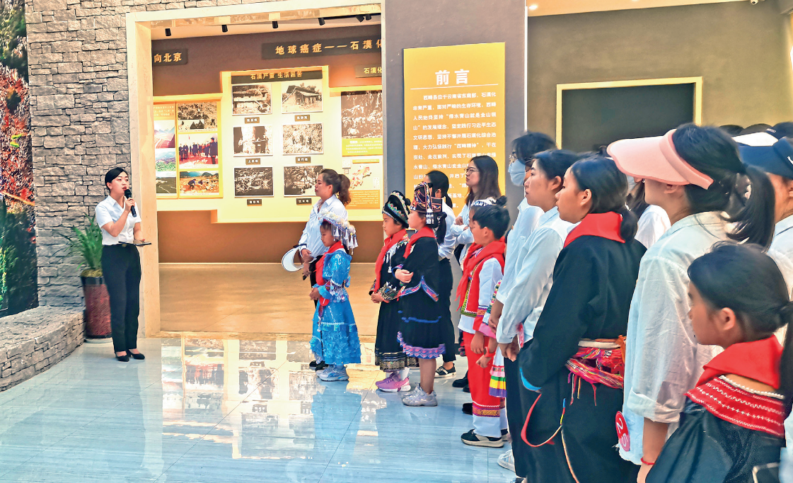从最初那个不善言辞的羞涩女孩,到现在的侃侃而谈,小讲解员的成长轨迹,藏在对每一个故事的深刻理解和精准复述里。她能清晰讲述1990年冬天,党员王廷位、刘登荣在摸石谷点燃炸石造地第一炮的壮举,讲解时她眼中闪烁的光芒,应该就是“西畴精神”在少年心中扎根生长的模样。“我要用讲解,让展馆里的每一张照片、每一件实物、每一段影像都成为连接过去与现在的桥梁,让‘西畴精神’在更多人心中生根发芽。”