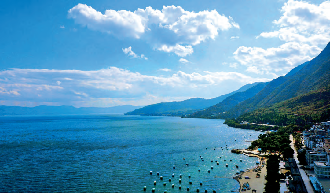 进入抚仙湖国家湿地公园沙亥河恢复重建区,榴花吐艳,桉树成林,郁郁葱葱。成片的鼠尾草铺满一地,零星开放的花朵如翘起的小尾巴,随风摇曳,好似一根根琴弦,在风中奏响蓝紫色的旋律。蒹葭苍苍,绿意盎然,一派湿地风光。鸟儿有时成群,有时三三两两,声声啼鸣,忽上忽下自在飞翔。哗啦啦阵阵涛声,此起彼伏,既悠远空灵,又激越高昂。循声而去,壮阔的抚仙湖映入眼帘。站在石子沙滩上,湛蓝色的湖水像一颗蓝宝石,万顷碧波滚滚而来,洁白的浪花卷起千堆雪。举目远望,座座青山绵延起伏,朵朵白云从山中升起,飘浮在蔚蓝的天空上。水映着天空,云衬着浪花,使蓝者愈蓝,白者愈白。正如清代诗人赞曰:“俞元胜迹问仙湖,一片烟波点荻芦。天上自来通碧海,人间不道有蓬壶。”