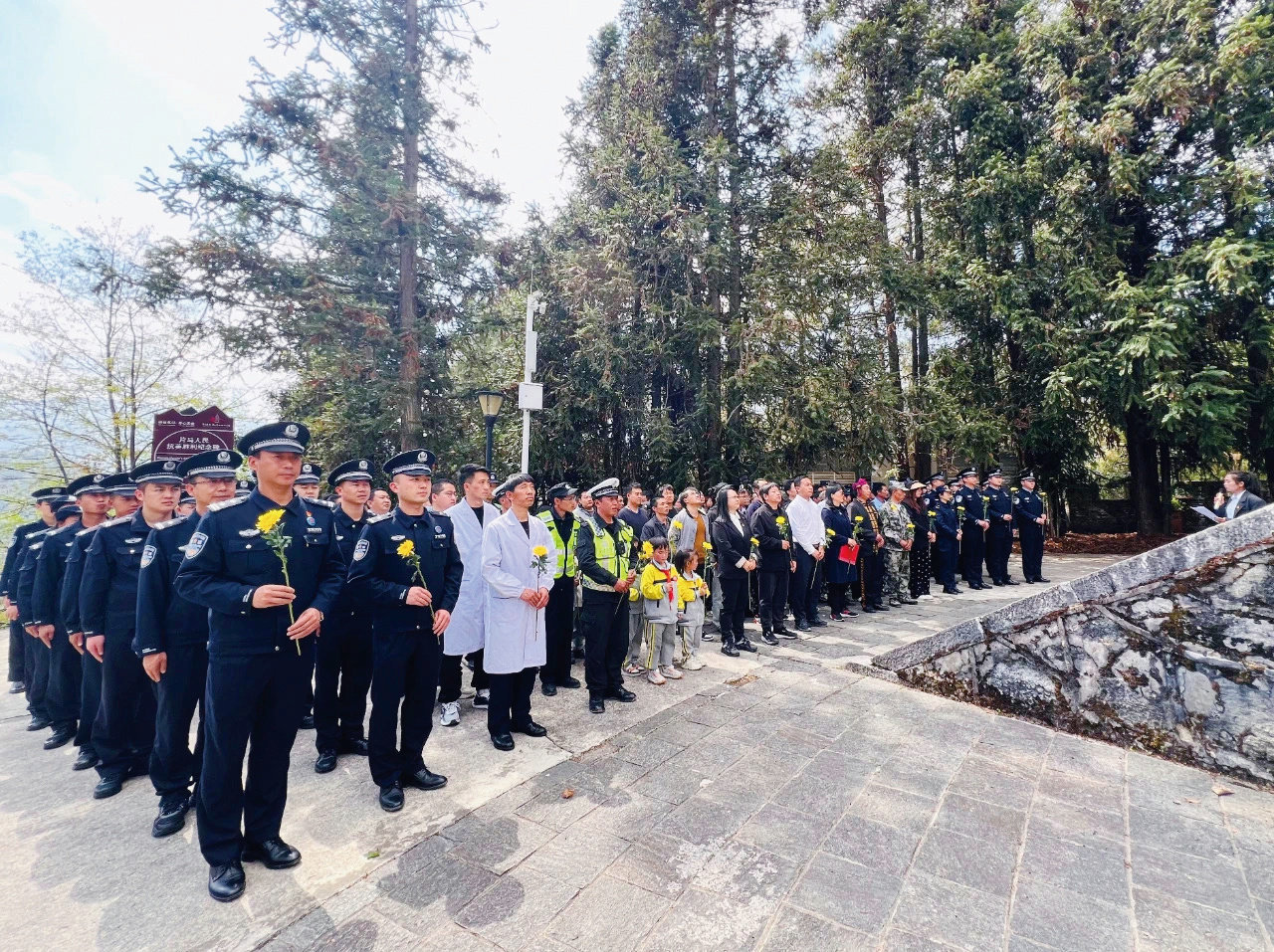 清明节片马镇党政机关军警民到片马人民抗英胜利纪念碑开展祭奠活动