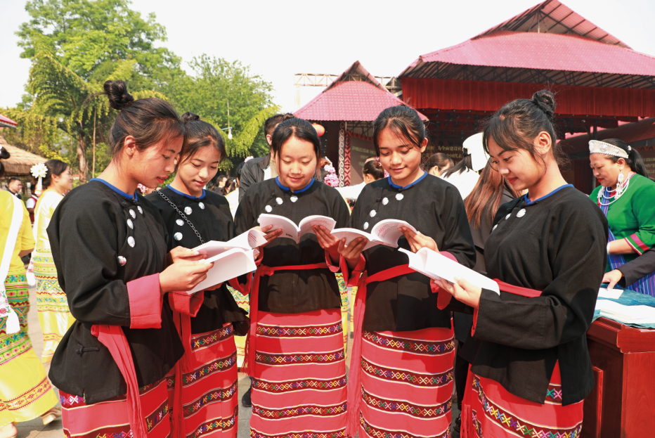 认真阅读党的二十大报告国家通用语言文字和佤文对照版图书 张东海 摄