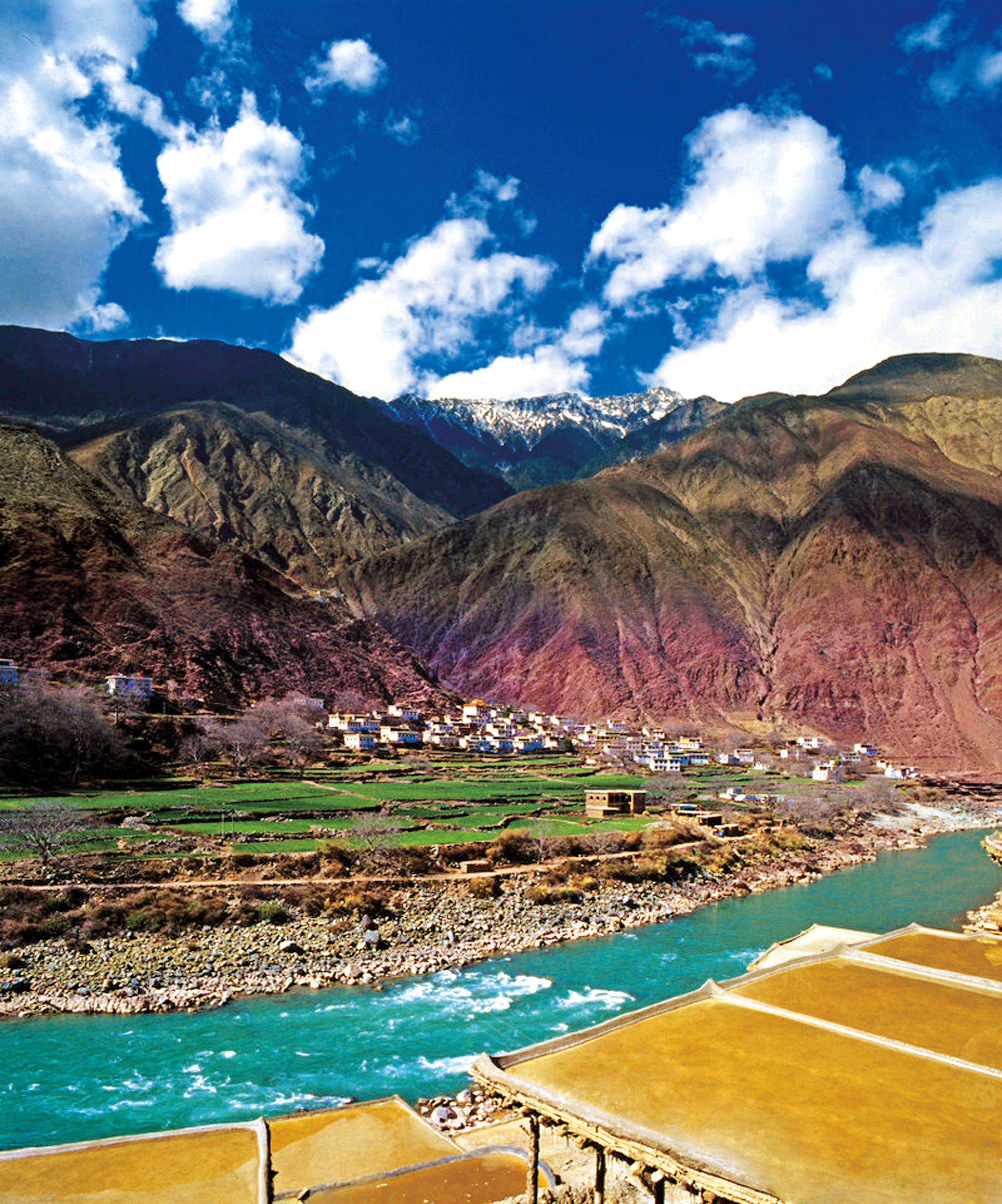 地处西藏芒康县和云南德钦县接壤之地的盐井古镇,是茶马古道进入西藏的第一站。历史上这里是吐蕃通往南诏的要道,滇茶运往西藏的必经之路,独特的地理位置让它成为古道上的一座重镇。盐井盐田这道人文景观现在是“茶马古道”上唯一存活的人工原始晒盐风景线。