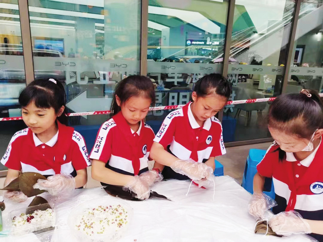 主题实践活动奏响最强音。学校充分利用安宁市委、市政府大力打造各民族交往交流交融的互嵌式学校教育场域、开发出很多校外教育资源的有利契机,通过班会、队会、劳动实践、社会实践等主题教育活动打通校内外融合教育的通道,让“做颗小小石榴籽,团结一心爱祖国”的要求逐步转变为自觉行动。校园广播站开展的“民族团结故事”演讲活动,讲述孩子们身边的民族团结故事;以六一节、建党节、建军节、国庆节等节日为契机,学校就开展“知我民族、爱我中华”手抄报、征文、黑板报比赛;每当中华传统节日到来,学校就开展“我们的节日”系列活动,增强学生对中华优秀传统文化的认同感。常态化的升旗仪式上,通过“国旗下讲话”,让学生了解党的民族政策和民族英雄事迹。9月的“童心向党庆国庆 我与祖国共成长”活动,全校朗诵诗歌、高唱红歌,在庄严的仪式中让爱国主义思想充满校园、充满每个人的心田。全国童声合唱节上,一曲云南少数民族原创歌曲《打歌来》,唱出民族团结、爱家爱国的炽热情怀;另一曲《撒尼少年跳月来》,作为重大活动保留曲目,表达出连小少年的爱国心;“校内饺子飘香 校外农耕挥汗”活动,让孩子们到农耕实践基地,在田间地头感受劳动的意义和劳动精神的伟大;“食粽思贤 情浓端午”活动,在颂扬先贤爱国精神,动手包粽子、送粽子的过程中,孩子们体会到的是中华民族伟大团结精神力量;“多彩假期 快乐成长”活动让孩子们亮本领、展技能,在“五育”并举成效的“炫技”中收获满满的成就感。以上活动不仅在安宁市各类融媒体平台“亮相”,还登上“人民网”“学习强国”等平台,展现了学校风采。