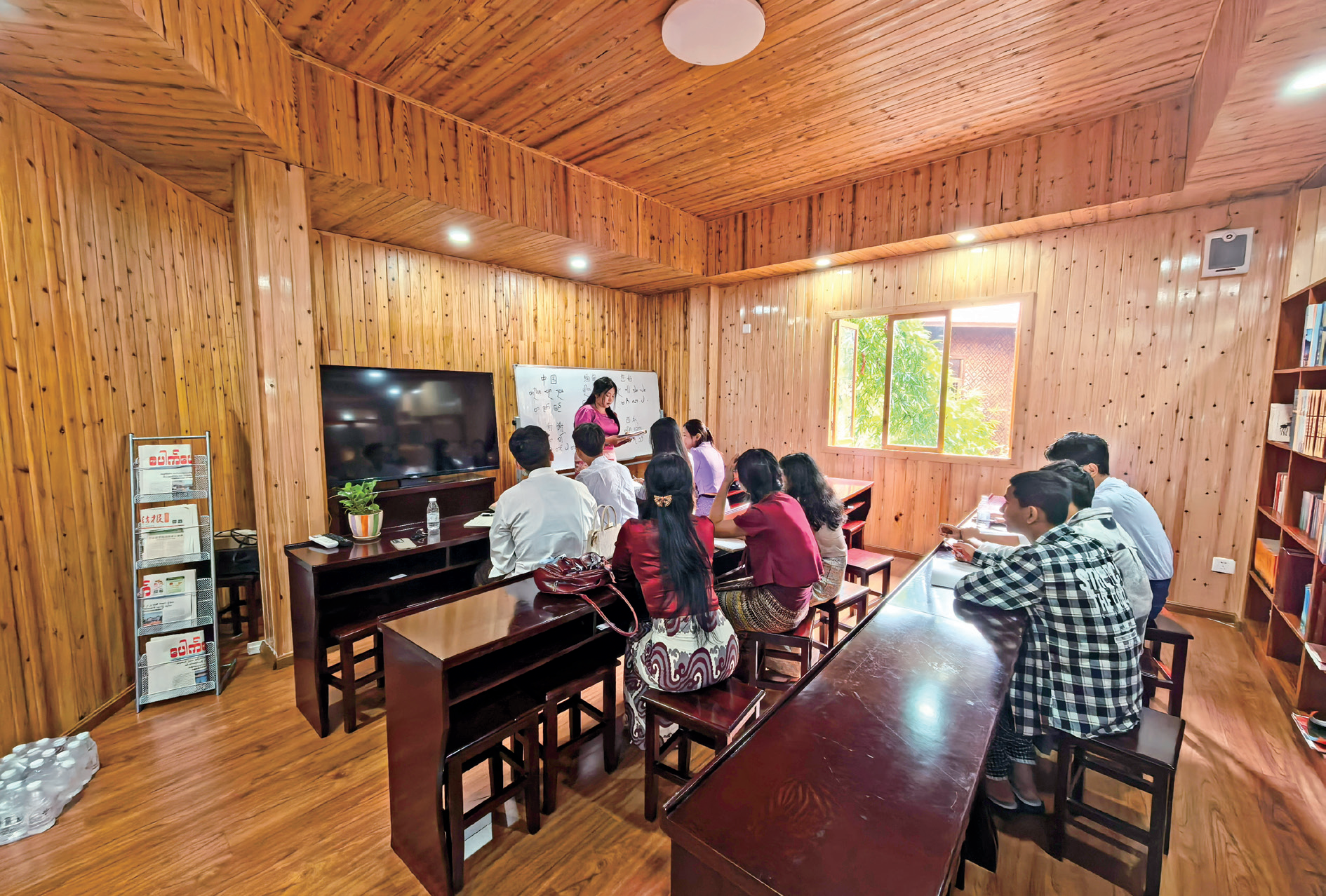 国门书社里,缅甸友人专注学习汉语