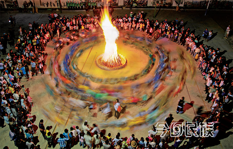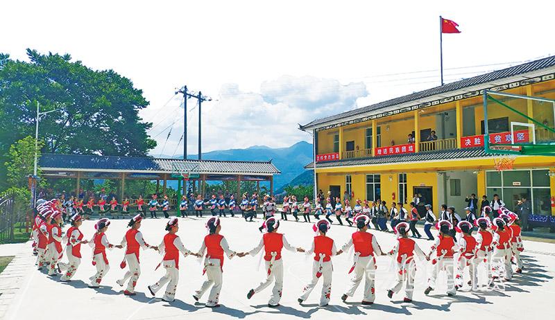 ▲大理州漾濞县高发村各族群众载歌载舞