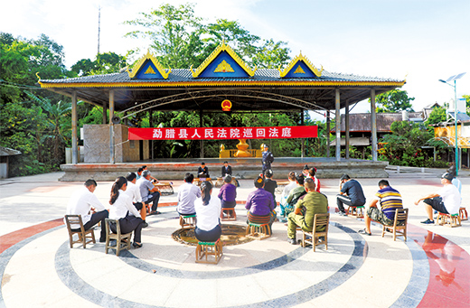 勐腊法院不断完善司法服务能力和水平,积极探索适合边疆少数民族地区的司法审判模式,努力满足各族群众日益增长的多元司法需求。一是持续深入开展巡回办案。坚持“法官多跑路,群众少跑腿”的原则,改变“坐堂办案”的单一模式,走出法院、走进乡镇,针对一些位置偏远、文化程度不高的少数民族当事人,深入村寨“上门送达”“上门调解”,把法庭搬到农家小院、田间地头,把矛盾化解在基层,引导各族群众增强法治观念,夯实民族团结进步和社会稳定的法治根基。二是深化矛盾纠纷多元化解。凝聚各方力量参与矛盾纠纷化解,同司法、妇联、侨联、交警及乡镇、农场、社区等25个单位建立诉调对接中心,把法律服务送到各族群众家门口。优化派出法庭、巡回审判点设置,于2021年10月挂牌成立勐捧人民法庭,促进诉讼端口前移,实现全县10个乡镇巡回审判点全覆盖,打通司法服务群众的“最后一公里”。三是全面加强智慧法院建设。依托“云解纷”“云南移动微法院”等平台,大力开展线上调解、审判、执行等活动,让办案解纷从“线下跑”转为“网上办”。逐步构建起“线上+线下”的立体化诉讼网络,集成跨域立案、自助查询、在线缴费等功能,确保了各族群众都能获得优质、便捷、高效的诉讼体验。