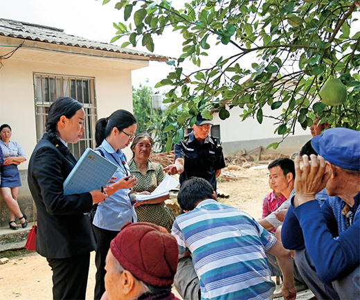 ▲勐腊法院干警帮助挂钩扶贫群众干农活,与群众交心谈心