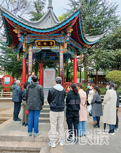 二是打造民族团结进步主题游览路线。游客从古城口进入,在民族团结进步讲解员的引导下,首先能参观一滴水经过丽江玉璧,感悟一滴水只有流进大海才永远不会干涸,理解中华民族共同体意识和各民族意识的关系;随后来到团结亭,了解丽江各族人民永远跟党走的故事;历史文化展示馆、边纵七支队纪念馆、木府博物院等地则可以体验不同历史时期丽江的风土、人情、革命故事,每年数以万计的游客沿着这条线路探寻民族团结进步的足迹。除此之外,围绕古城区党建“八大教室”,打造“思政教育主题教室+文林村”民族团结进步主题线路,已成为到古城区考察学习的必选点位。