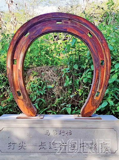 印有马帮行话的马掌雕塑