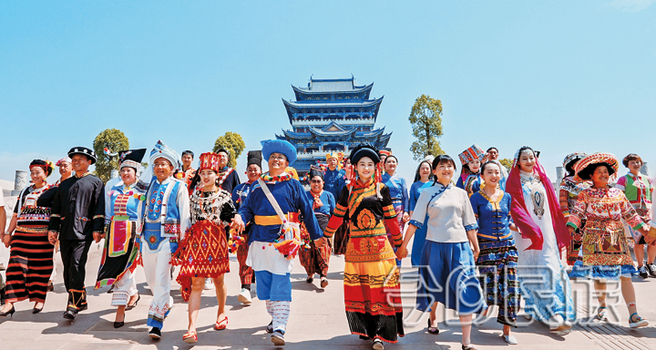 同源共流引领“汇聚融”。坚持文化认同是最深层次的认同,全员全媒、线上线下全方位宣讲各民族“一起走过”“一起生活”“一起实现”的鲜活生动故事。组建各类宣讲团500多个,拍摄专题公益宣传片、微电影、专题电台访谈节目45部(期);开展“中华民族一家亲,同心共筑中国梦”主题摄影、征文、演讲比赛、网络答题、文艺会演等活动;深入实施中华优秀传统文化传承发展工程,完善了519项中华优秀传统文化数据库,实施了一批世居民族文化精品工程,各民族优秀文化互嵌交融、创新发展、百川归海;做实“牢记领袖嘱托,永远感恩奋进”“杨善洲精神”“红色教育”“爱国戍边”四条现场教学示范带,年均100余万人次接受现场教学。各族干部群众“五个认同”持续坚定,铸牢中华民族共同体意识的思想基础更加坚实。