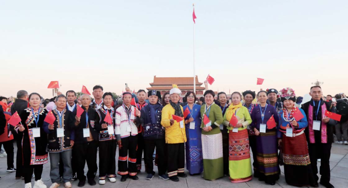 普洱民族团结誓词碑盟誓代表后代在天安门广场合影留念 滕俊 摄