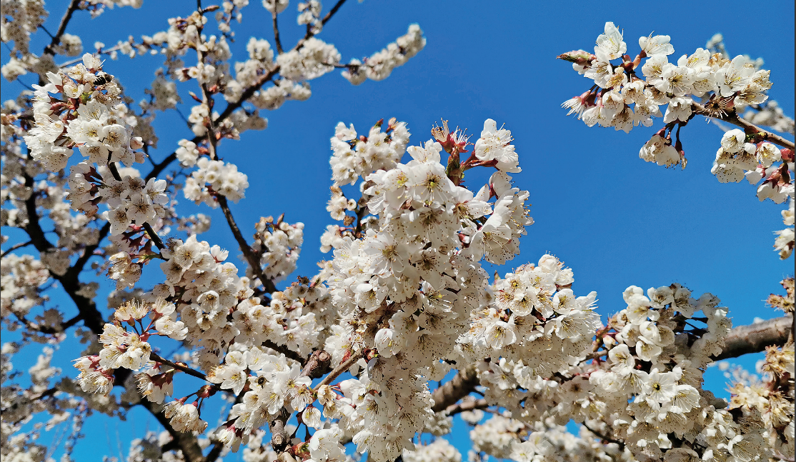 粉白芬芳的樱桃花盛开在春光里