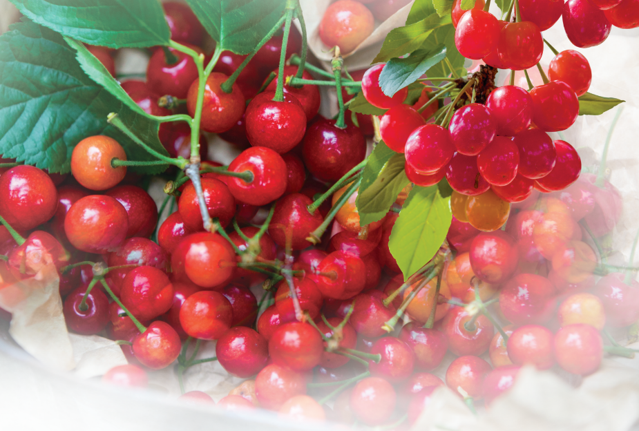 红光闪亮的晚熟樱桃温润欲滴