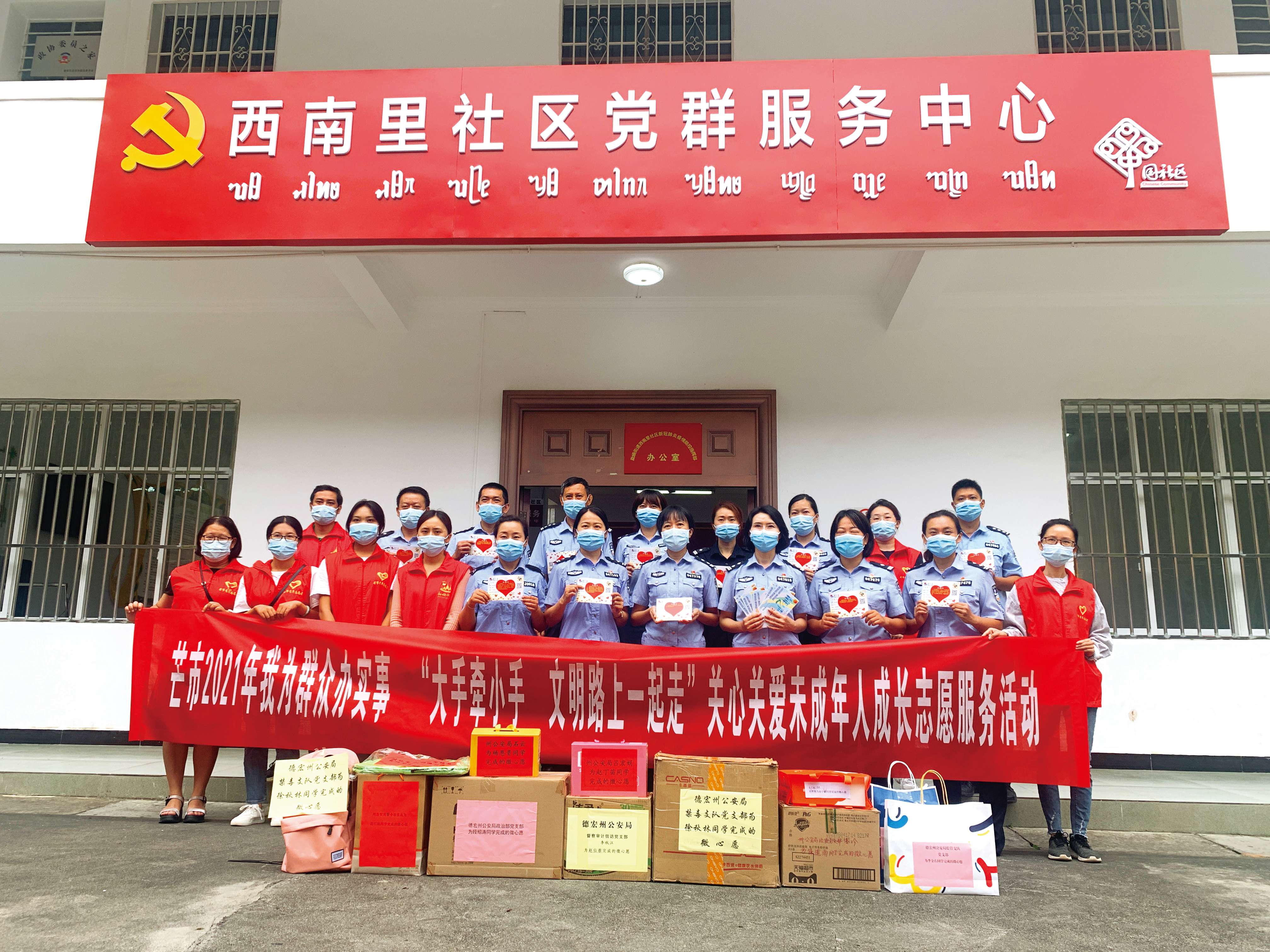 西南里社区,地处芒市城市中心地区,社区共有28个居民小组1978户6446人,设有党总支1个、党支部9个,现有党员105名,辖区内居住着汉族、傣族、景颇族等7个民族,少数民族人口占总人口的12.98%。