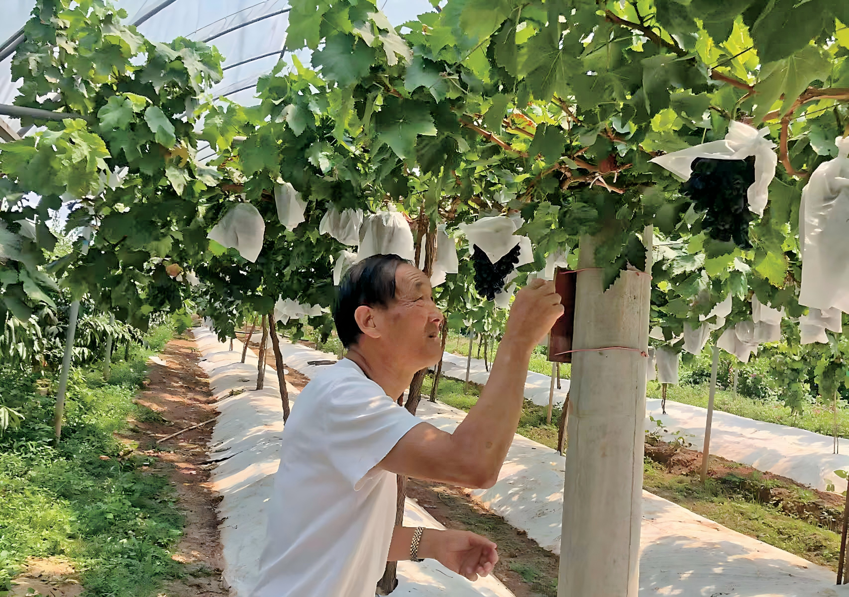 昆明兰露梦农业科技有限公司董事长张宝龙在基地里查看葡萄长势