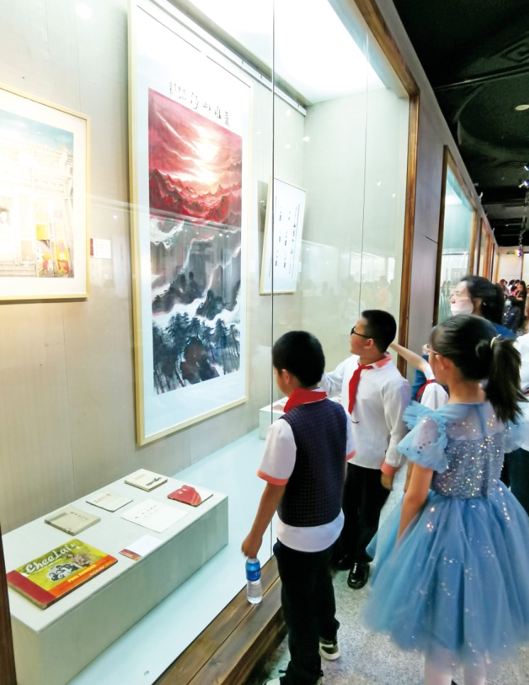 “讲好聂耳和国歌的故事”的展品来自昆明学院、长沙师范学院,以及昆明市长春小学、护国街道等师生和聂耳街坊创作的200余幅书画作品,还有民间收藏家马定元先生的近百件藏品。展览以照片、实物、视频为主,辅以“场景化+沉浸式+互动型”的展示方式,讲述聂耳、田汉生活、学习和创作的故事,让参观者入情入境,有形、有感、有效地增强青少年对中华民族共同体的文化认同和价值情感认同,引导青少年把爱国情、强国志、报国行自觉融入到学习文化知识和中华民族伟大复兴的奋斗中。