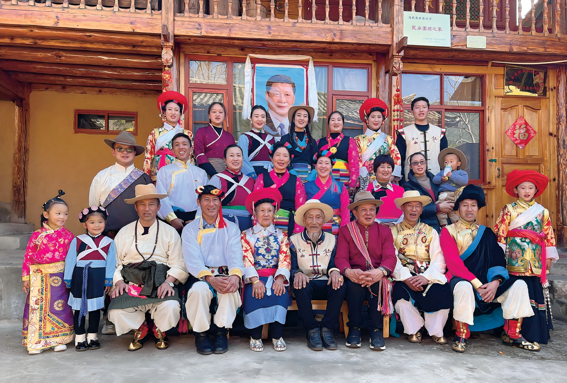 进了村子,吃纳西美食,行藏家礼,唱傈僳歌,房里院内纳西瓦房、藏家装饰、傈僳风情交融共存;进了院落,总有三五成群的村民或跳锅庄,或拉弦子,唱着身边事,跳起新生活,各族乡亲不分彼此,人心像火塘会一样聚拢在一起;进了校园,民族元素手工艺品、民族特色广播操等活动开展得有声有色,“中华民族一家亲”的理念植根于心。
