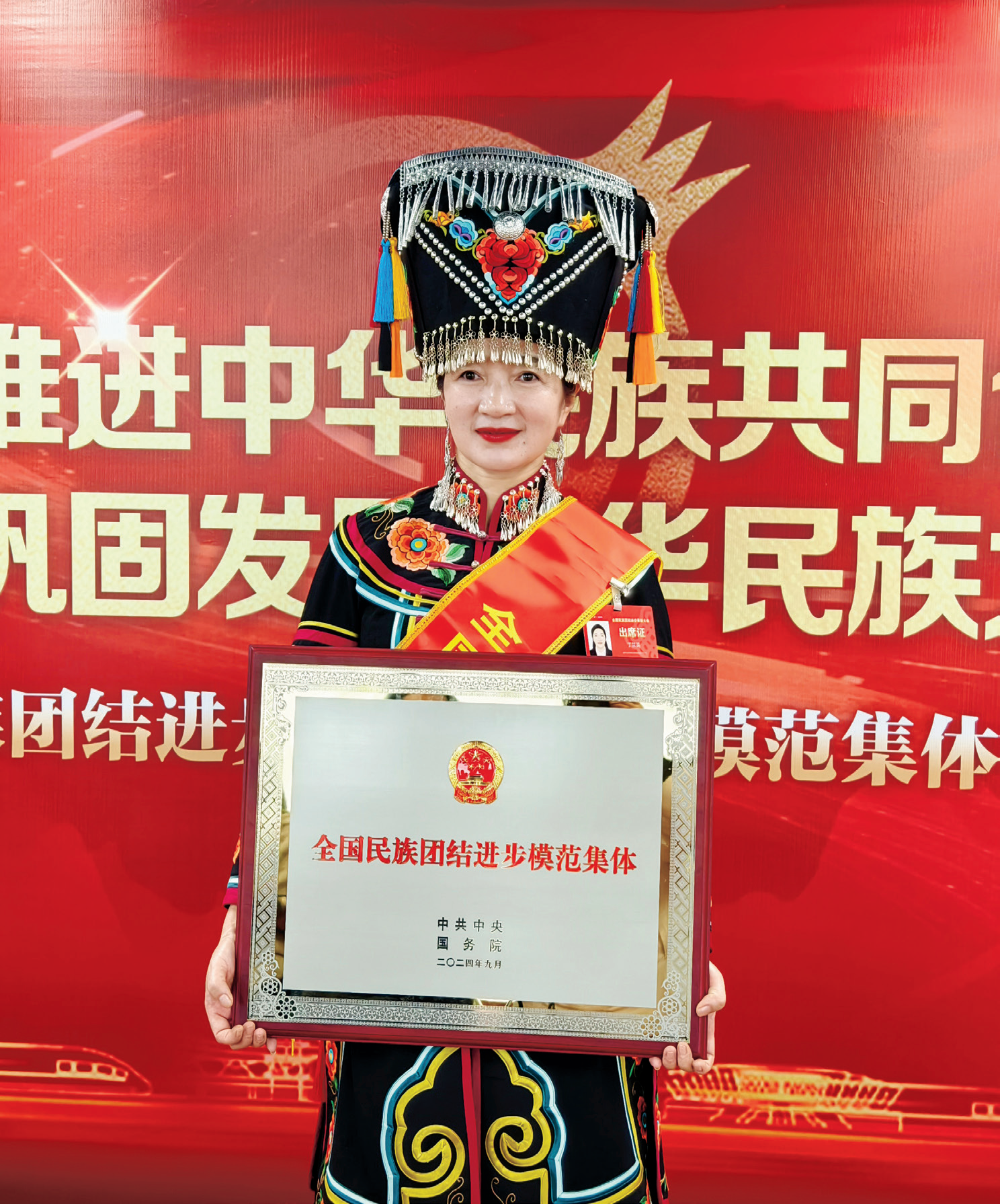 南华七彩彝绣文化传播有限责任公司匠心传承数十载,挖掘传承72种针法,其中14种是机器不能够代替的;绣娘也从彝族拓展到了7个民族,共计2021人;为621名脱贫户和109名残障人士提供了在家门口就业的机会;近年来与耐克、阿迪达斯等品牌合作,于大牌服装中融入彝绣创意,让更多人“把彝绣穿起来”……2024年9月,南华七彩彝绣文化传播有限责任公司被命名为全国民族团结进步模范集体。