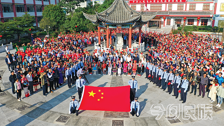 ▲2019 年9 月30 日,由县委宣传部在民族团结园组织开展“千里边疆同升国旗同唱国歌”活动