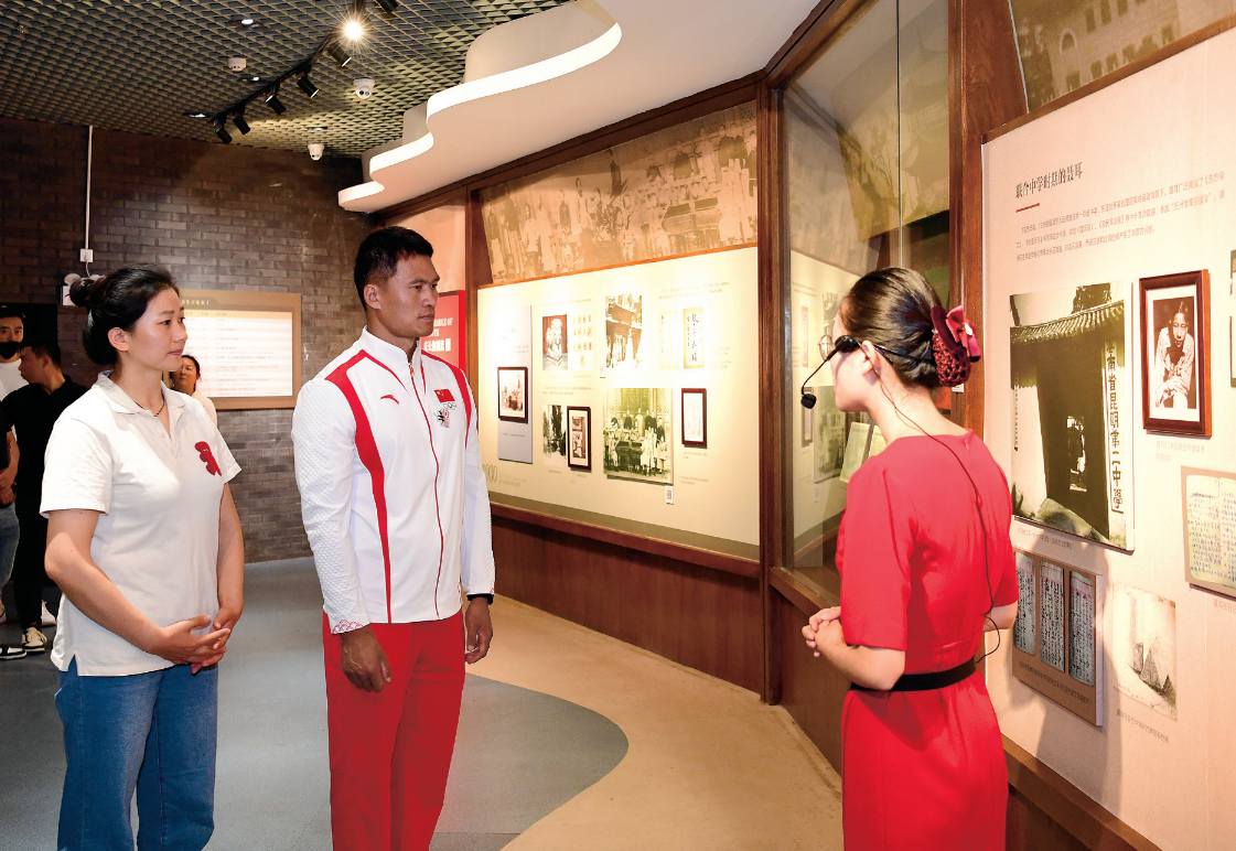 巴黎奥运会皮划艇静水男子500米双人划艇冠军刘浩参观聂耳纪念馆 曾永洪 摄