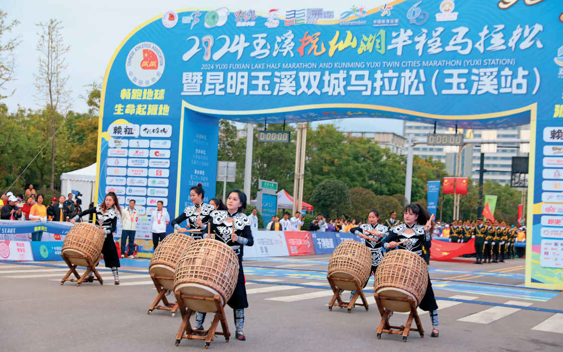 除专业赛事外,玉溪还创新打造了民族团结进步群众体育赛事体系。其中,“聂耳杯”羽毛球公开赛已吸引来自8个民族的600余名选手参赛;高原湖泊山水联赛串联起抚仙湖、星云湖等特色景区,实现“体育+旅游+民族团结”的深度融合。据统计,2024年,云南玉昆队16个主场赛事共吸引观众30.2万人次,拉动体育及餐饮、交通、住宿、旅游等相关行业消费约4.27亿元;玉溪马拉松、玉溪抚仙湖半程马拉松暨昆明玉溪双城马拉松(玉溪站)的成功举办,有效拉动体育及相关行业消费约3.53亿元。而玉溪“服务周到、安排妥帖”的办赛形象、“风光秀美、干净整洁”的城市形象和玉溪人民“富裕幸福、有情有义”的群体形象,更是推动文体旅“融”出大流量,“合”出新价值。