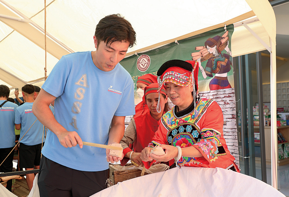 以美食文化交流,让各族群众“吃在一起”。夜幕降临,红塔区青花街飘来阵阵香气。傣味烧烤摊前,来自贵州的杨女士正和摊主学习制作菠萝饭。“美食是最好的交流方式。”杨女士笑着说。