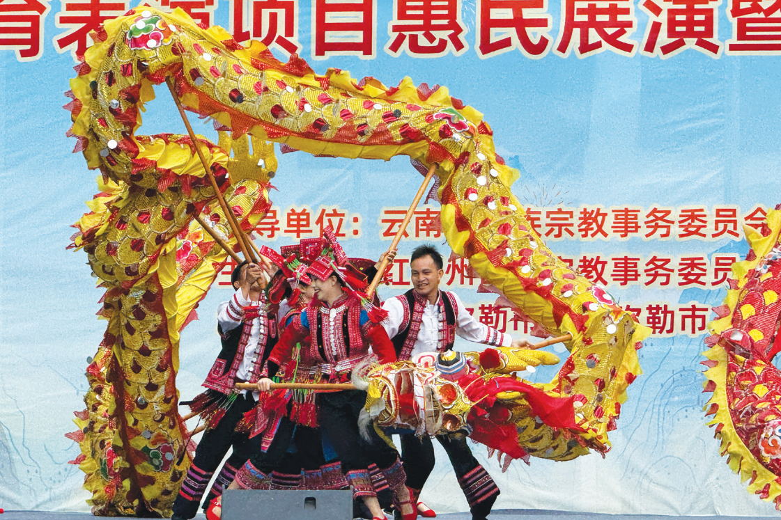 弥勒市聚焦各民族“有形交往、有感交流、有效交融、有机互嵌”四个维度,将阿细跳月、斗牛、摔跤等少数民族传统体育活动,深度嵌入旅游旅居、餐饮消费等业态场景,以“四维交融”不断拓宽各民族全方位嵌入的新路径。