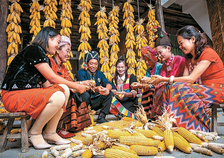特色产业让边疆大地焕发活力。芒市芒晃村整合傣族美食、非遗民宿、数字电商,打出发展“组合拳”:23家餐饮经营户中四星级农家乐达4家,13家特色民宿推出“民宿+咖啡”“民宿+书吧”等模式,非遗展示厅内580余件实物作品吸引游客驻足,桃园、橘园让休闲农业火起来。盈江县旧城周末街变身“共富市集”,77场赶集活动吸引线上线下客流超230万人次,营业额突破1800万元,为村集体增收60余万元,提供就业岗位300余个。“以前农产品卖不出去,现在在家门口就能交易,还能跟其他民族的乡亲交流种植技术,日子越过越有奔头。”傈僳族村民李木然看着即将销售一空的摊位脸上笑开了花。