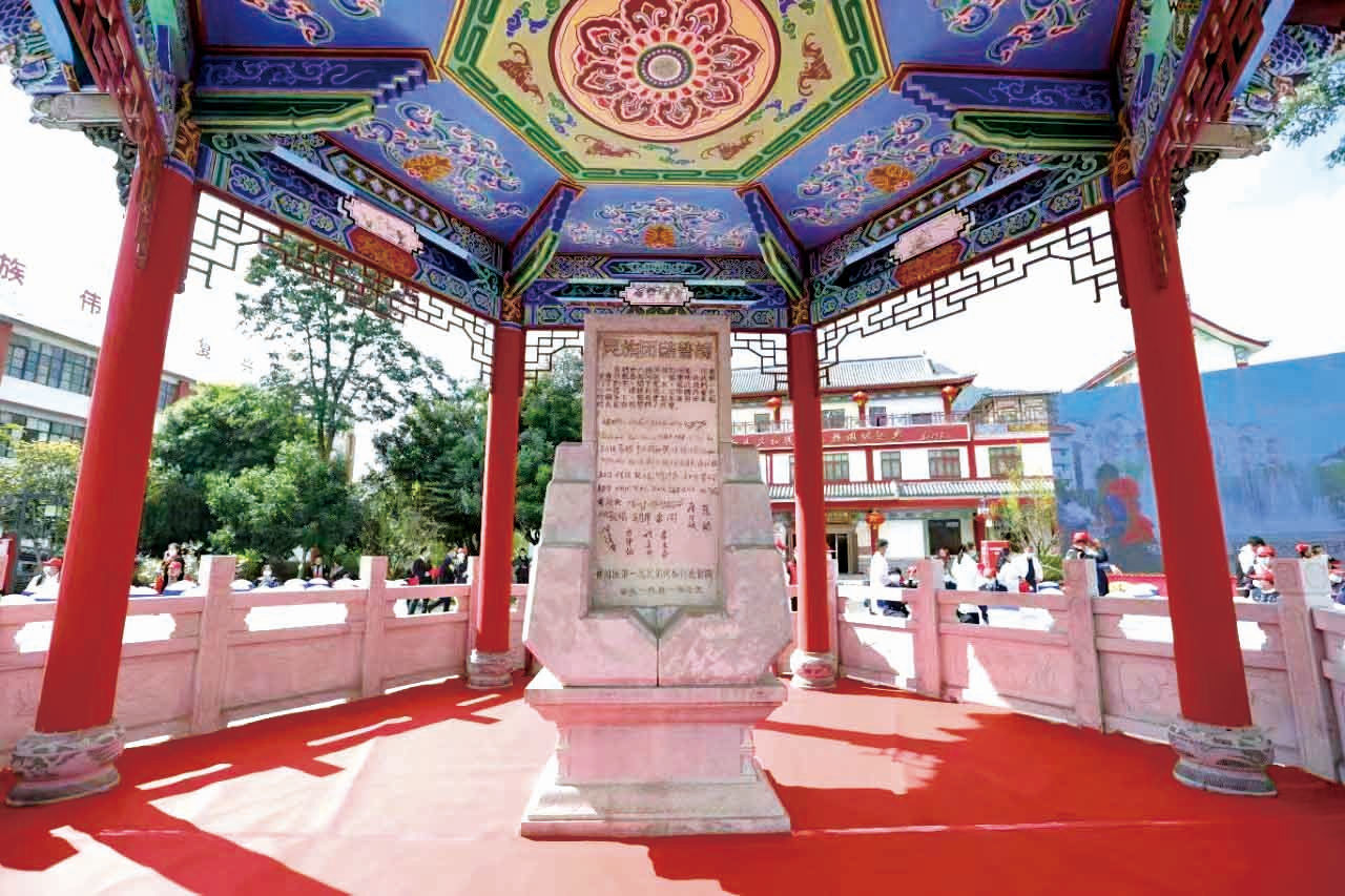 时光流逝,丰碑如磐,誓言永恒。2003年,民族团结誓词碑所在的宁洱县民族团结园被列为云南省第二批社会主义教育基地、爱国主义教育基地;2006年,被列为第六批全国重点文物保护单位、全国民族团结进步教育基地;2023年,入选全省铸牢中华民族共同体意识教育实践基地,成为边疆民族团结进步事业发展的重要展示窗口。
