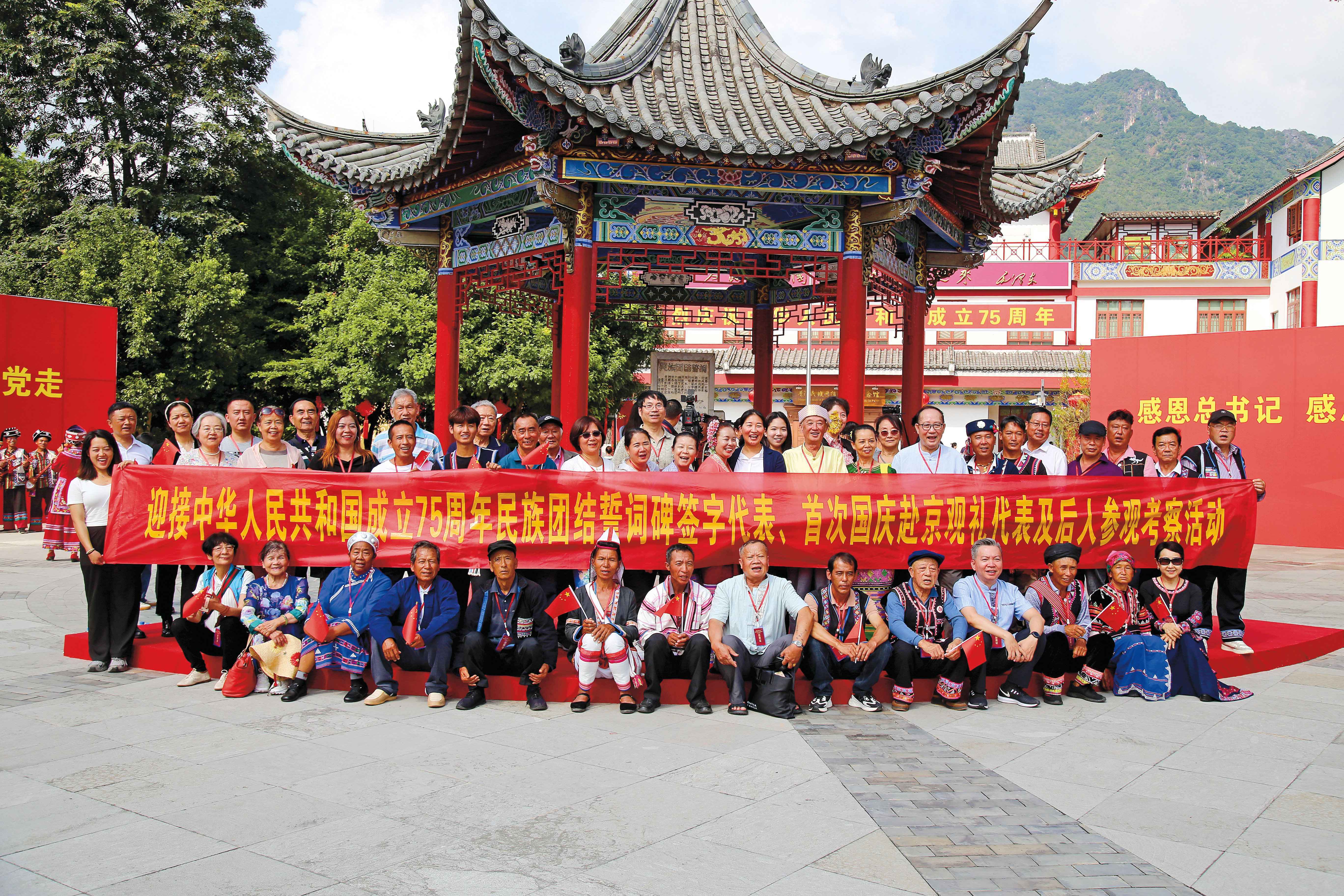 一是充分发挥民族团结代代相传的引领作用。2024年9月,习近平总书记在给普洱民族团结誓词碑盟誓代表后代的回信中指出:“1951年,包括你们先辈在内的各族代表立碑盟誓,郑重许下同心同德跟党走的誓言。”深刻揭示了普洱民族团结誓词碑最鲜明的特质,充分肯定了各民族为建设新中国而团结奋斗的坚定意志。普洱各族人民在历史长河中矢志不渝跟党走,书写了民族团结进步生动篇章。