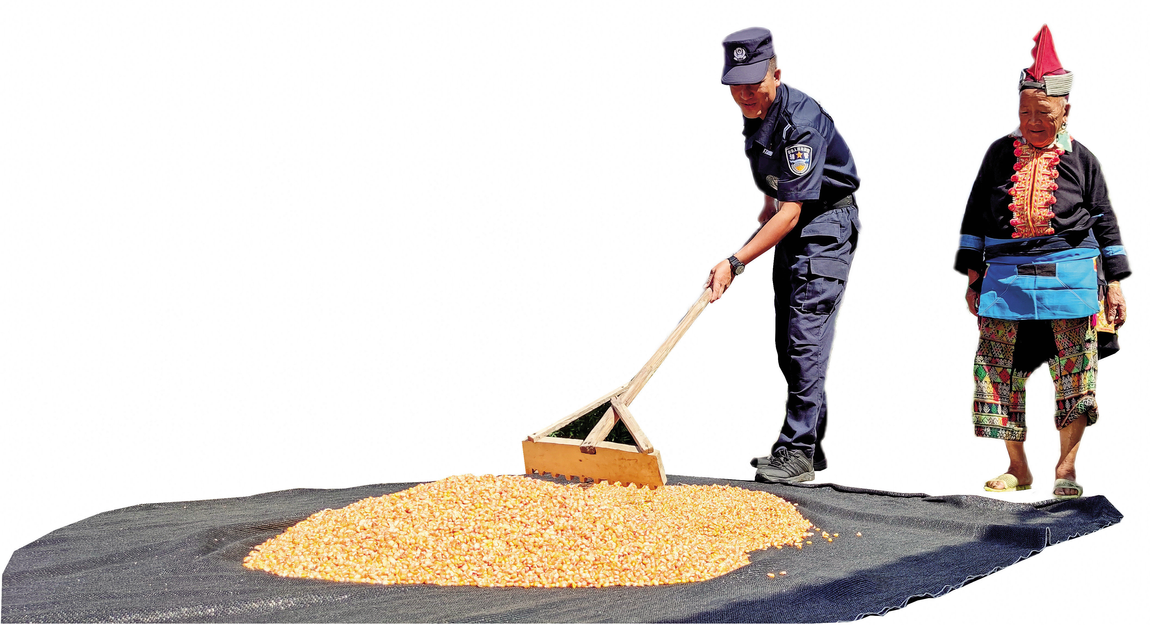 帮着村民晒包谷粒