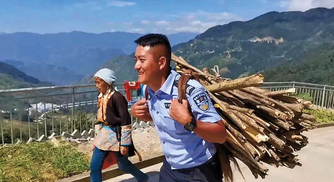 朱国庆帮村民背柴