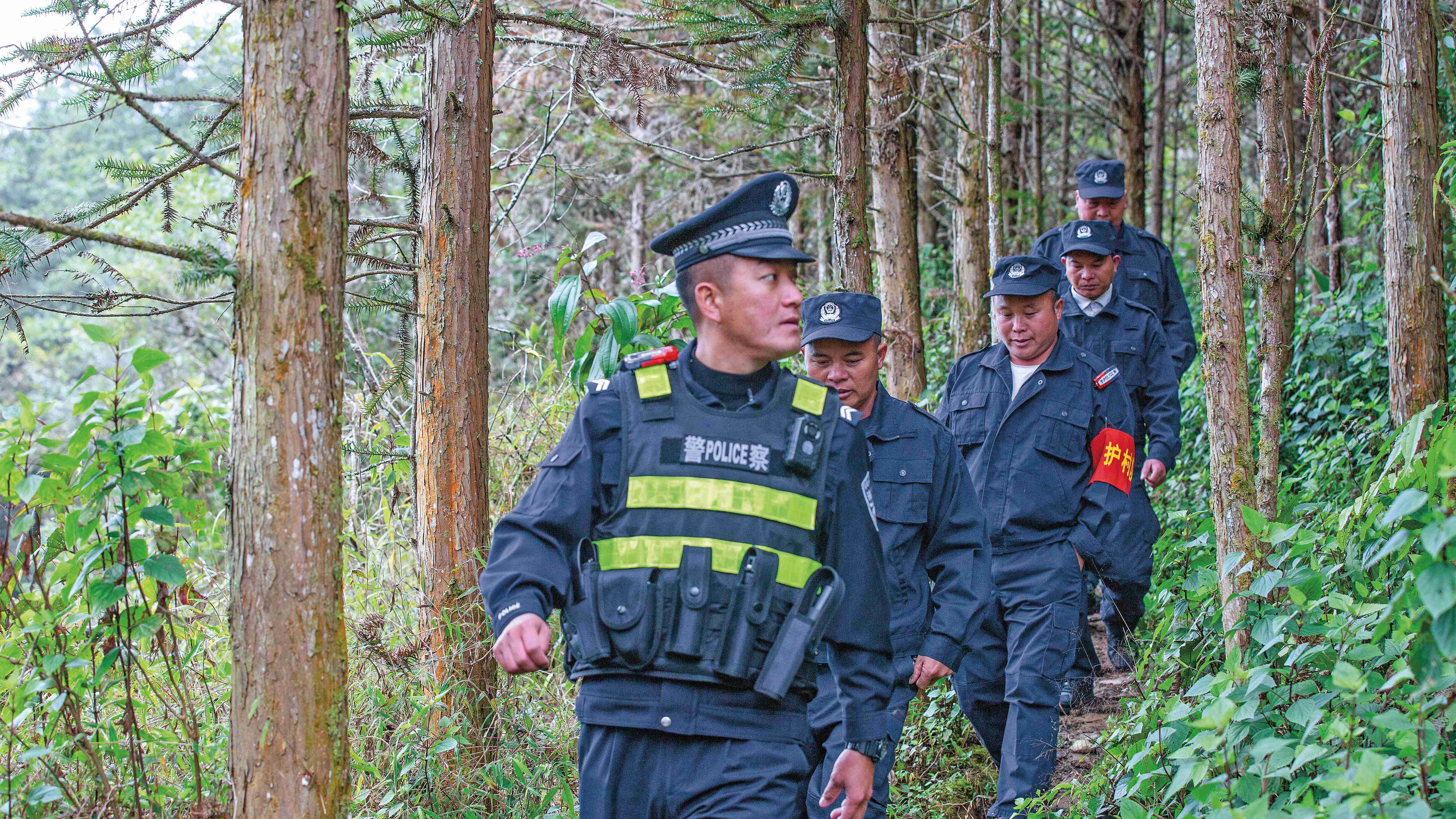 朱国庆与护村队一起巡防山林小路