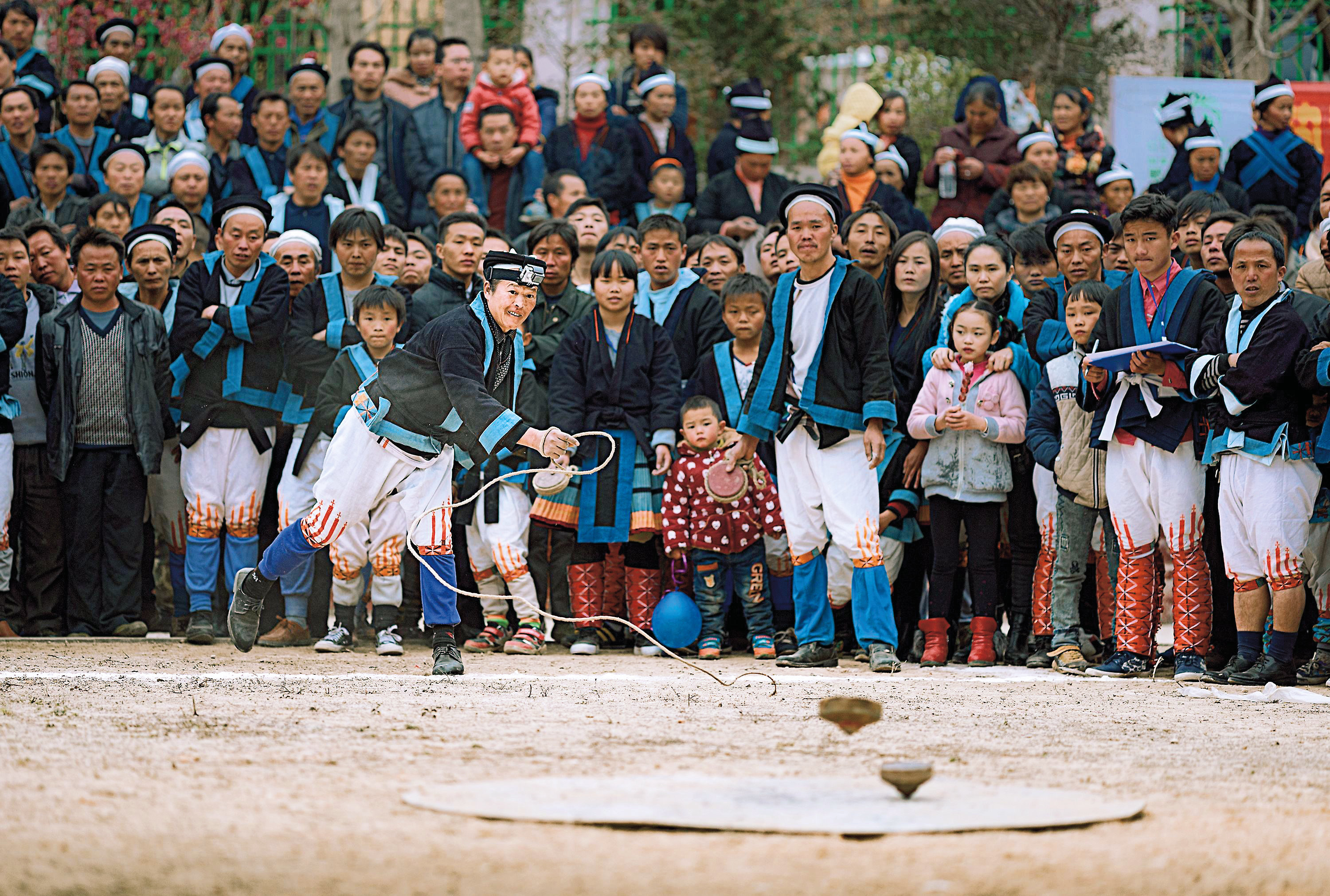 荔波:院坝挥鞭“抽陀螺”